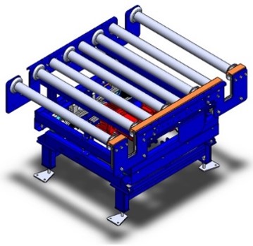 适用室内环境的托盘直角过渡、变向移载机主要由上部的移载组件和下部的顶升部分组合而成。移载机辊道移载机和链条移载机两种形式。辊道移载机的上部是辊道移载组件,链条移载机的是链条移载组件。阻挡附件有端部阻挡、驱动侧阻挡和从动侧阻挡可选